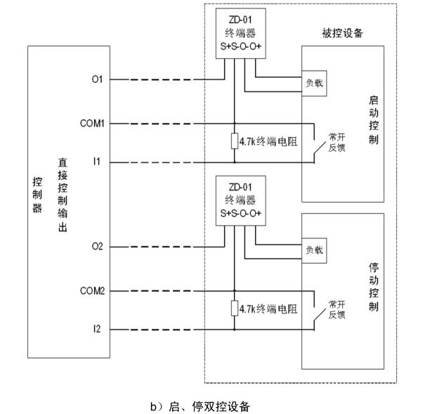 O、COM:組成直接控制輸出端,通過ZD-01終端器與負(fù)載連接,O為輸出端正極,COM為輸出端負(fù)極,啟動(dòng)后O與COM之間輸出DC24V。