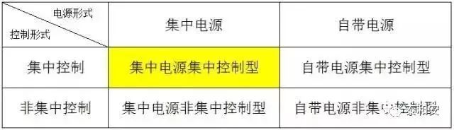 消防應(yīng)急照明和疏散指示系統(tǒng)按控制形式分為集中控制和非集中控制,應(yīng)急電源的實(shí)現(xiàn)方式有集中電源和非集中電源。所以就有4類系統(tǒng)形式: