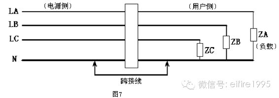 對于線路是否共零有一簡單檢查方法,如圖7在穿過互感器的零線上,在互感器外臨時跨接一根約12#的銅導線,長約1 米,要求接觸良好。