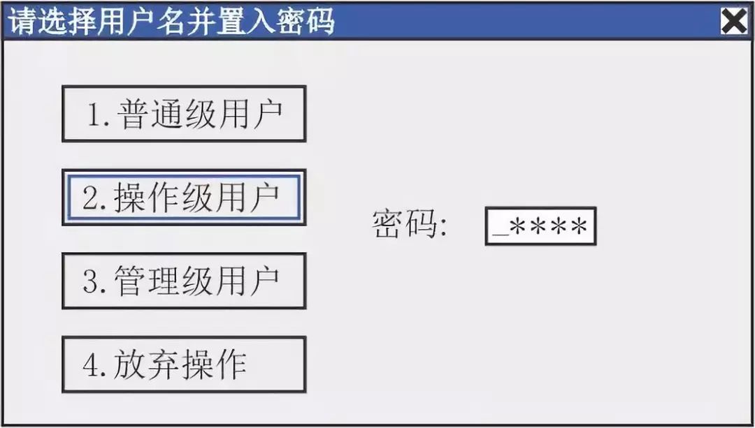 選擇操作級用戶輸入密碼為2134