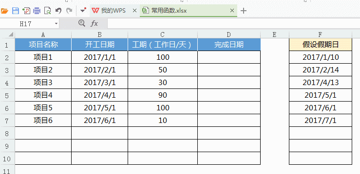 用途:計(jì)算某指定日期在N個(gè)工作日之后(或之前)的對(duì)應(yīng)日期,一般用于計(jì)算一項(xiàng)工作需要做N天后完成的結(jié)束日期等。