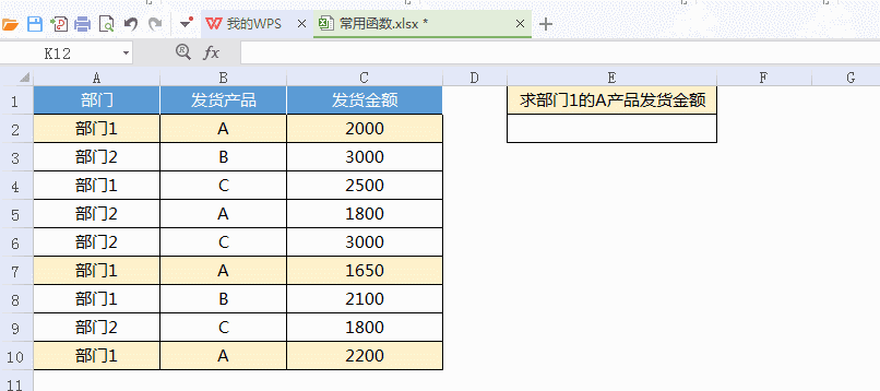 ▲舉例:求某部門某產(chǎn)品發(fā)貨總金額(只要將上面的公式后面乘以求和列就可以)。