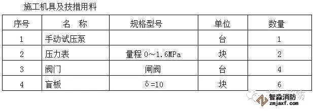 5.1.1試壓用的機具及技措用料見所附的機具及技措用料表;