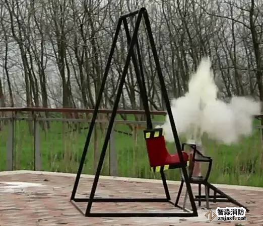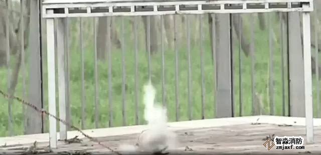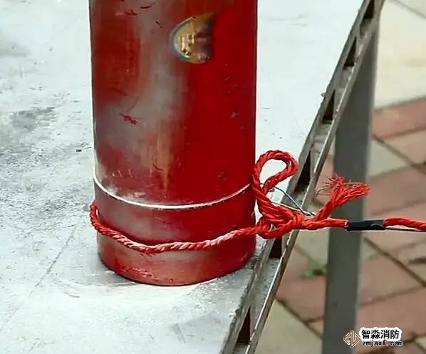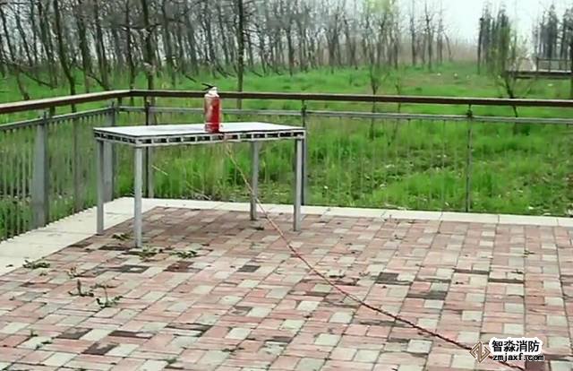 我們用一根繩子拴住一個(gè)過期的滅火器,在安全距離外扯動(dòng)繩子,讓滅火器跌落在地,看看會(huì)發(fā)生什么。