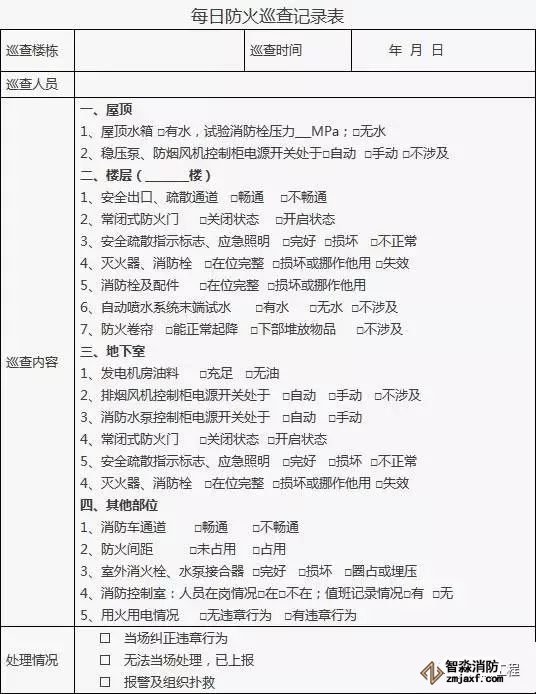 3、對發現的問題應及時處理,當場不能處置的要填報《建筑消防設施故障處理記錄》。