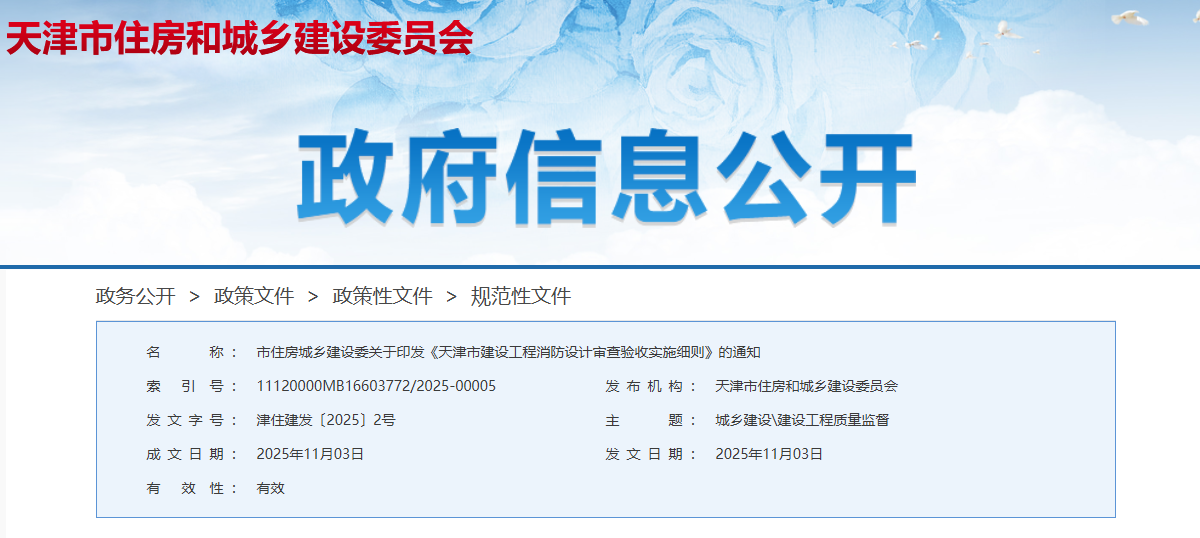 《天津市建設工程消防設計審查驗收實施細則》發布:明確分期驗收、告知承諾制