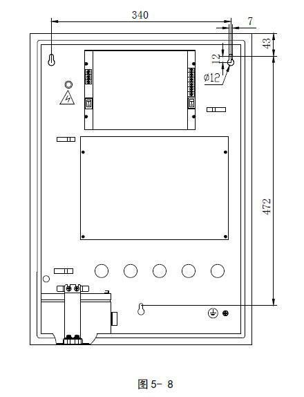 氣體滅火控制器采用壁掛式安裝,安裝尺寸如圖5-8 所示。用3 個(gè)M6 的膨脹螺栓將GST-QKP04固定在牢固的墻壁上,膨脹螺栓的水平間距為340mm,高度相距472mm。