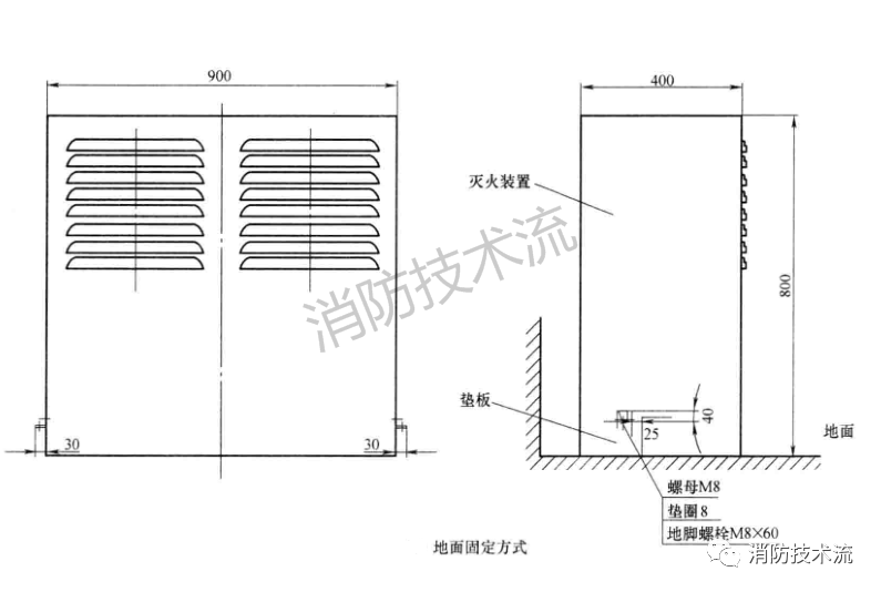 落地式S型氣溶膠自動(dòng)滅火裝置安裝固定方式