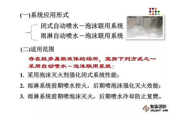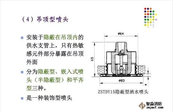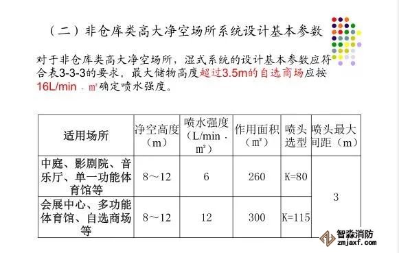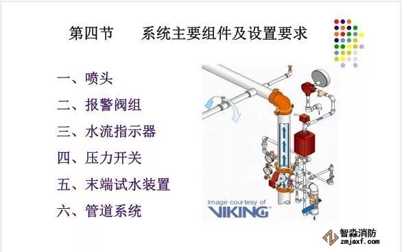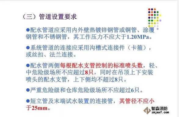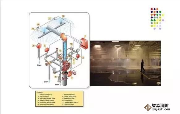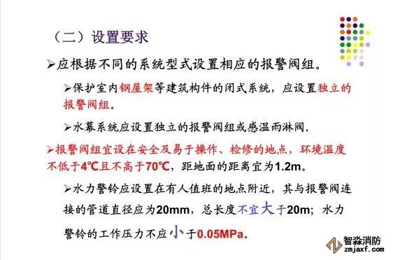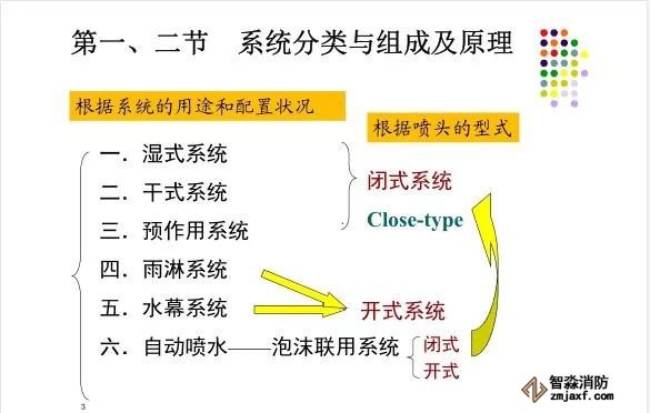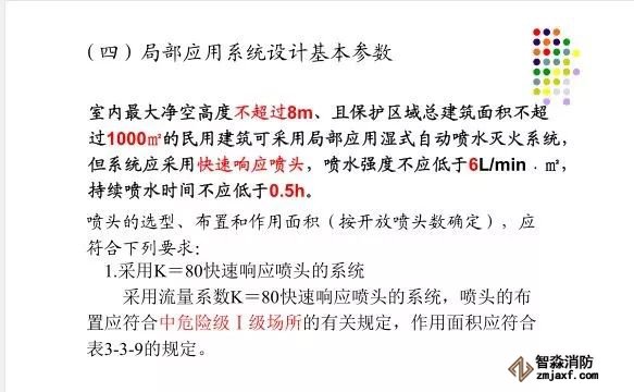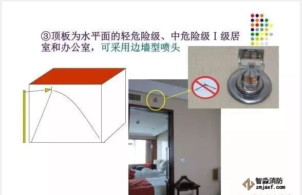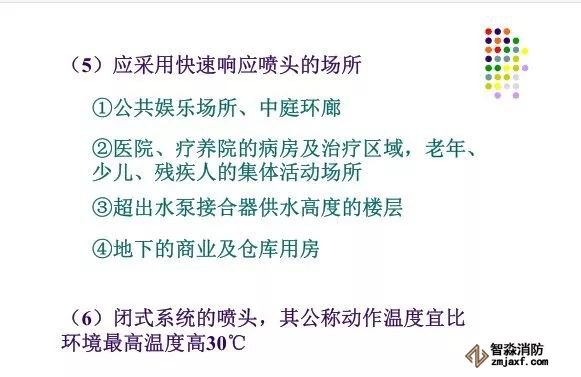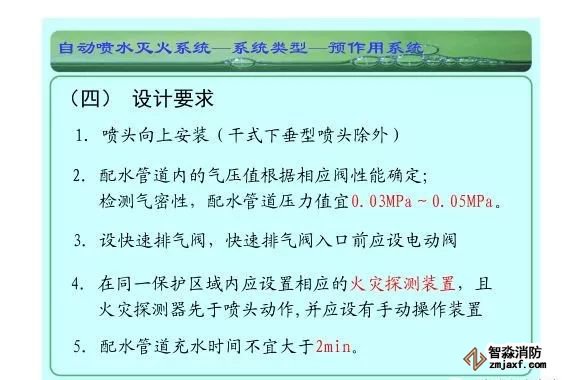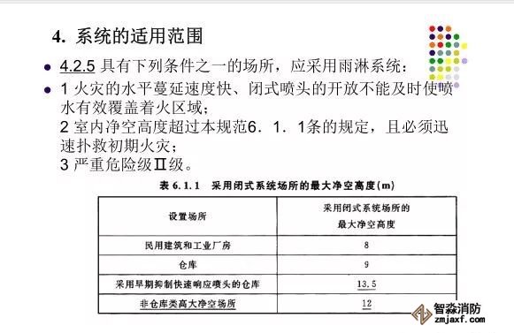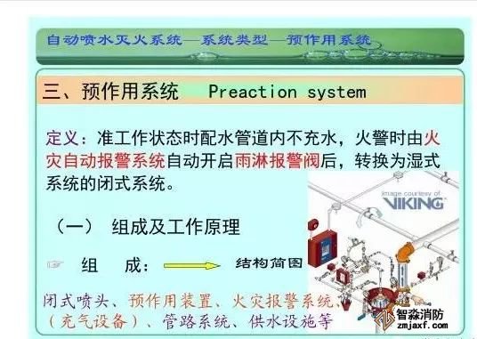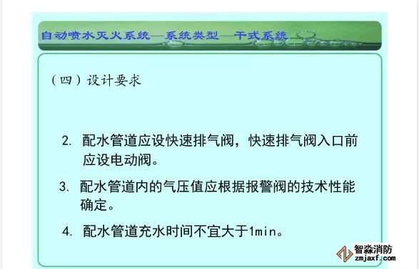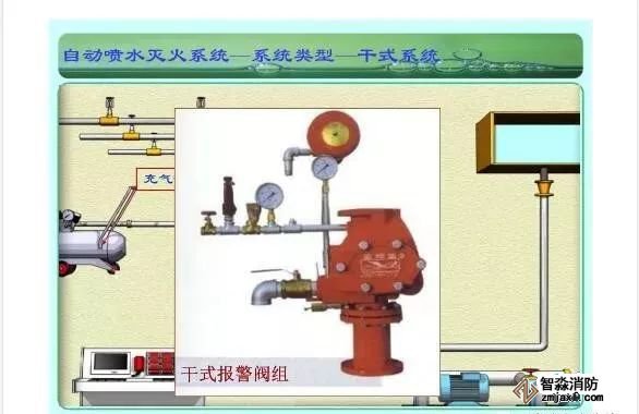 在環(huán)境溫度不低于4℃、不高于70℃的建筑物和場所(不能用水撲救的建筑物和場所除外)都可以采用濕式系統(tǒng)。該系統(tǒng)局部應(yīng)用時,適用于室內(nèi)較大凈空高度不超過8m、總建筑面積不超過1000㎡的民用建筑中的輕危險級或中危險級Ⅰ級需要局部保護的區(qū)域。3.濕式系統(tǒng)特點:①.結(jié)構(gòu)簡單,使用可靠②.系統(tǒng)施工簡單、靈活方便
